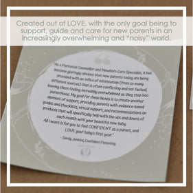 Filled to the brim with BEAUTIFUL SUPPORTIVE PRODUCTS, as well as Celebratory MILESTONE DISCS & CARDS, Monthly "What to Expect" GUIDES & ways to MANAGE any bumps and hiccups along the way; CHECKLISTS and Worksheets, developmental ACTIVITY Ideas, and a Monthly COACHING & SUPPORT Consultation with My Mama Coach.
