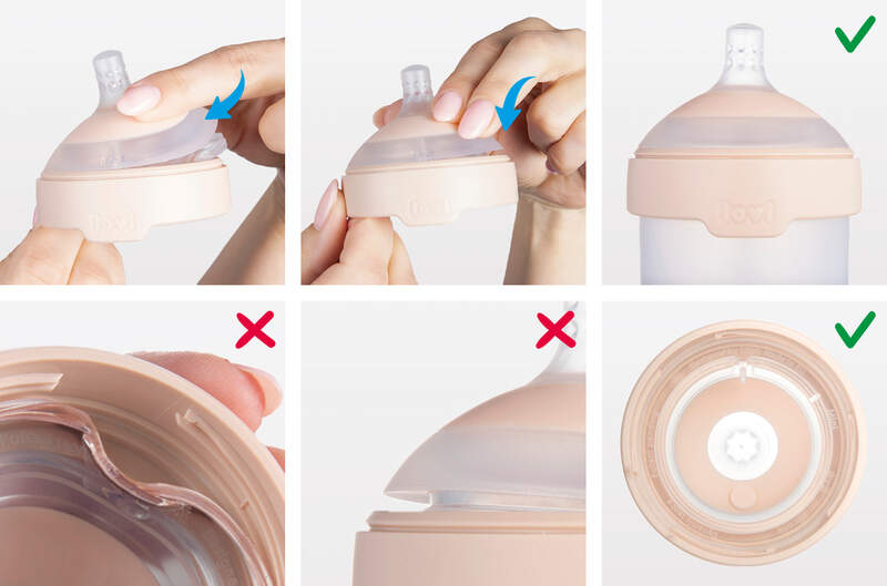 The sturdy, wide base with soft coating ensures a tight fit to the bottle teat. Baby’s mouth is supported by the firm base and the lips are positioned correctly. The soft coating provides extra grip during drinking and prevents the mouth from sliding on the teat surface.
